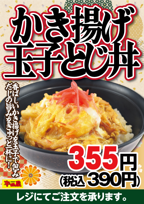 「かき揚げ玉子とじ丼」 355円(税込 390円)
