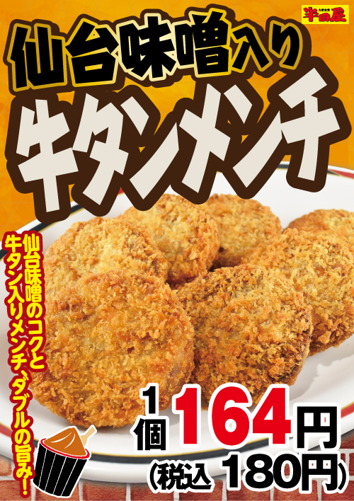 「仙台味噌入り牛タンメンチ」 1個 164円(税込180円)